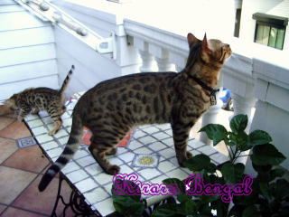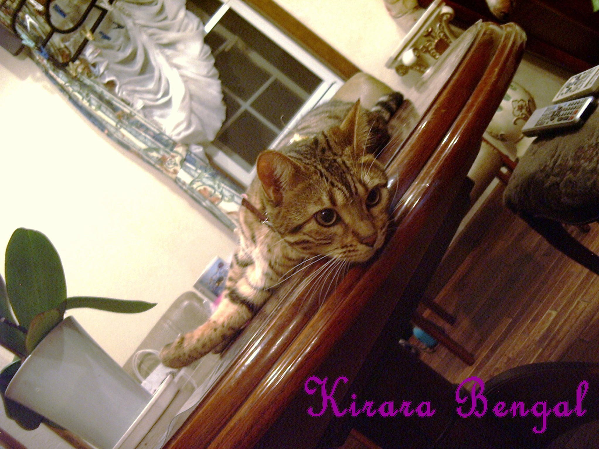| 彼女は沙羅の妹です。私は彼女達のFather&Motherが特に大好き(*^_^*)そして沙羅自身の性格もとても素敵です。そのDNAをもう1つ増やしたくて彼女を選びました。一足先に現地で会ってきました!!!素晴らしい環境で育っているので日本に来ても彼女が落胆しないような環境づくりを考えてます。(*^_^*) 姉妹でもその子の好みや癖など個々に違うのでとても楽しみです。Bengal